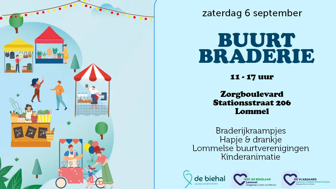 Gezellige braderie met circulaire & lokale kraampjes. Koop leuke spulletjes aan één van onze braderijkraampjes, loop langs de infostandjes van Lommelse buurtverenigingen of geniet van een hapje en een drankje op onze sfeervolle terrassen. Ook voor de allerkleinsten is er animatie voorzien.